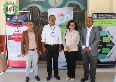 Lors de l’intervention du CDBF, la Directrice de la Prévention, Madame RABEMANANTSOA Princia Nicole, a déclaré que la présence du CDBF durant cette formation n’avait pas pour but d’intimider, mais de conseiller et d’inciter tout un chacun à la vigilance dans la gestion des deniers publics.