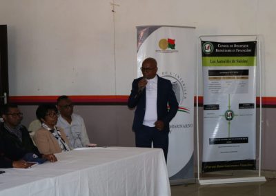 Vient ensuite une séance de sensibilisation à travers le Club Régional de la Gestion Publique Itasy (CRGP). Il s’agit de la deuxième réunion du CRGP dans la région Itasy qui a pour but de partager avec les acteurs au niveau régional les lois et règlements concernant la gestion de la Finance publique et partager les difficultés au sein des acteurs. La séance a été mis en évidence par le partage du rôle des acteurs au niveau local dont l’ordonnateur, le GAC, le PRMP, le comptable, et la séance a été honoré par la présence de monsieur le Gouverneur de la Région et ouvert par monsieur le préfet de Miarinarivo. Le point fort de la séance a été de souligner qu’il est important de respecter les règles concernant le patrimoine de l’Etat notamment les PV de recensement doivent être côtés paraphés, il est également nécessaire de faire la réédition des comptes. Des fautes de gestion ont également été soulevées par l’inexistence de budget et pourtant les communes font des recettes et des dépenses ; l’exécution sans nomination des acteurs.